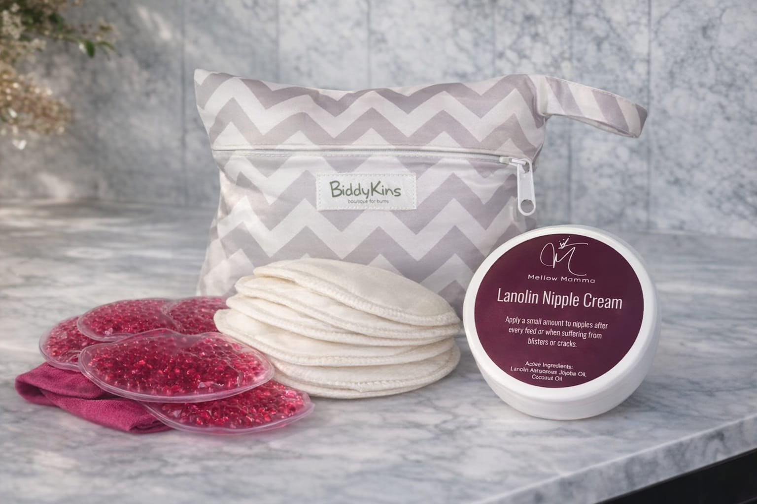 - 8x Cotton breast pads with wash bag (Re-usable)